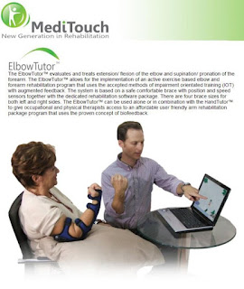 MediTouch es una empresa israelí que desarrolla aplicaciones para biofeedback en ejercicios de rehabilitación con sensores que podríamos llamar de realidad virtual (guantes, coderas, tobilleras y rodilleras). Su lema es que son la nueva generación en rehabilitación. New Generation in Rehabilitation. Llevan desde 2004 desarrollando sus productos